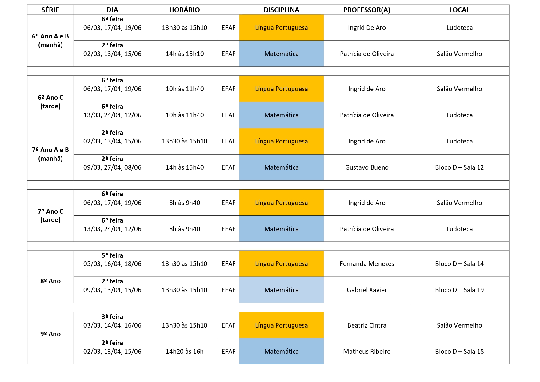 Confira o calendário do 1º semestre: