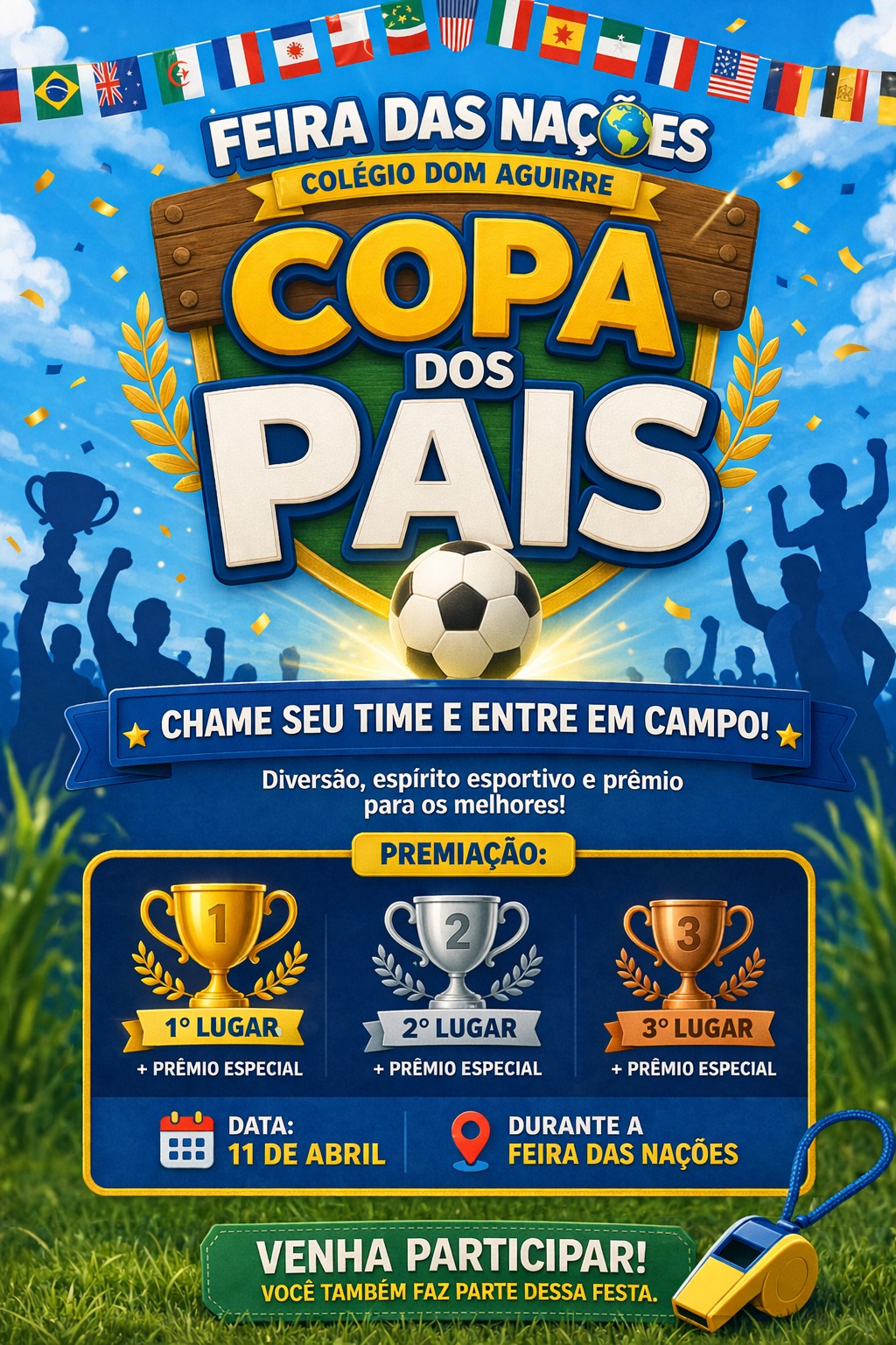 É com grande alegria que convidamos vocês para participarem da nossa Copa dos Pais, uma atividade especial preparada para tornar a Feira das Nações 2026 ainda mais envolvente e significativa!