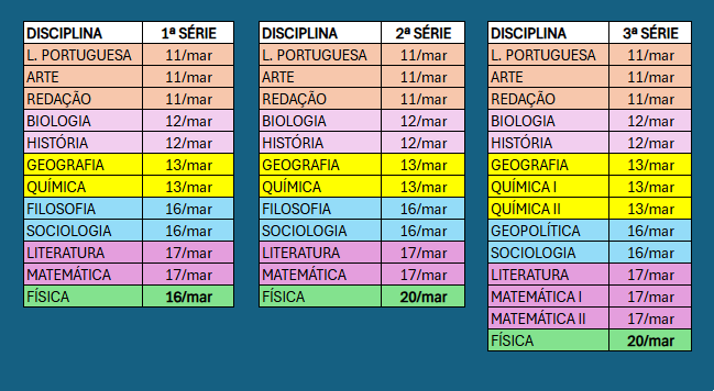 Confira os dias das provas abaixo::